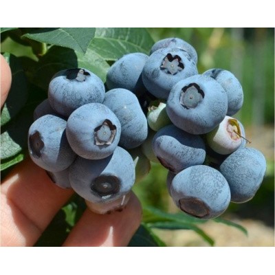 Цвет ягод светло-синий, с небольшим пепельным оттенком и налётом, который образуется благодаря восковому блеску. Кожура плотная и упругая, а мякоть нежная и сочная, с небольшими семечками внутри. Голубика хорошо держится на плодоножке и не осыпается, что значительно облегчает сбор урожая.